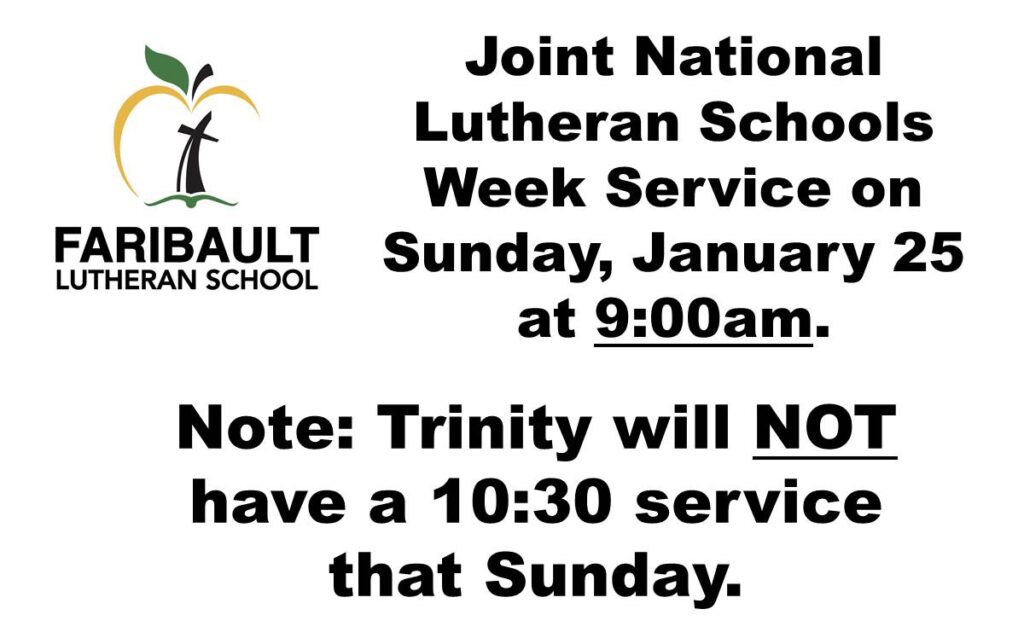 As Ambassadors For Christ, Trinity Lutheran is a congregational family that God has placed in the Faribault community to proclaim the Word of God in its truth and purity… so that our members mature in faith and serve Him by caring for one another, and by making a positive Christian impact upon our community and world!